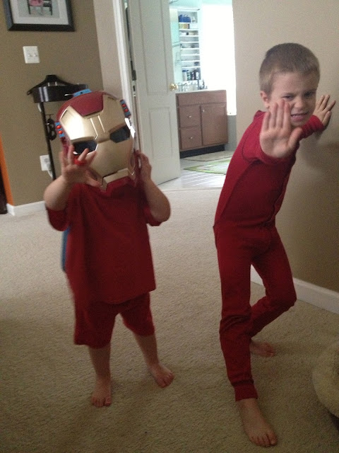 Jack dressed Hannah up so they could play Iron Man together!